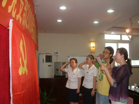 “七一”前夕,物管公司黨支部在南山舉行了慶祝建黨88周年大會,公司在職黨員、業主黨員及入黨積極分子50余人參加。會議總結了2008-2009年度支部工作,表彰了先進,舉行了新黨員入黨宣誓儀式。