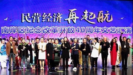 2018年10月30日,由南岸區(qū)委統(tǒng)戰(zhàn)部、南岸區(qū)工商業(yè)聯(lián)合會(總商會)主辦,南岸區(qū)民營企業(yè)家協(xié)會承辦的紀(jì)念改革開放40周年“民營經(jīng)濟(jì)再起航”文藝匯演在重慶施光南大劇院隆重舉行。