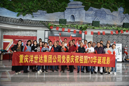 為慶祝中華人民共和國成立70華誕,弘揚愛國主義精神, 2019年10月11日,洋世達集團黨委組織公司全體黨員及入黨積極分子約60人到影院集體觀看愛國主題影片《我和我的祖國》,接受了一次生動的愛國主義教育。