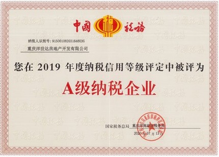 重慶洋世達實業(yè)(集團)有限公司、重慶洋世達房地產(chǎn)開發(fā)有限公司在2019年度納稅信用等級評定中被重慶市南岸區(qū)稅務(wù)局評為A級納稅企業(yè)。