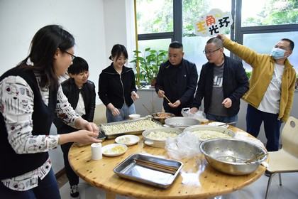 上午10點15分,包餃子活動大比拼正式開始,壽星們立刻卷起袖子加入到包餃子的行列,各部門同事也紛紛助陣。餃子的各種花式包法齊齊登場,現場氣氛熱烈!
