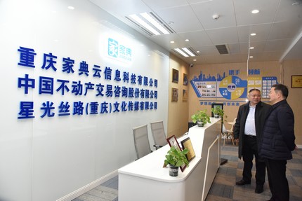 隨后,歐副主任一行驅(qū)車來到重慶家典云信息科技有限公司,參觀了解了家典不動產(chǎn)交易平臺及線上智慧社區(qū)的運營和服務(wù)情況。