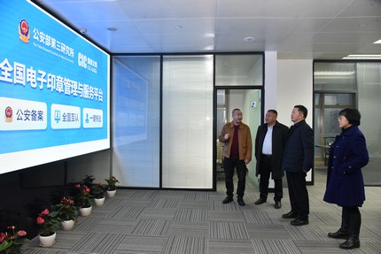 最后,調(diào)研組一行來到重慶國信公鏈印章有限公司走訪。作為公安部第三研究所及CIC國信公鏈研究院全國電子印章管理與服務(wù)平臺重慶市平臺,公司為重慶市內(nèi)政務(wù)部門、企事業(yè)單位、社會組織及個人用戶提供電子印章權(quán)威備案、簽章、查詢、核驗等公共服務(wù),搭建并實現(xiàn)了“公安備案、全國互認(rèn)、一鍵核驗”的電子印章應(yīng)用服務(wù)體系,為減輕企業(yè)運營成本、打破電子印章區(qū)域應(yīng)用壁壘、助推數(shù)字經(jīng)濟(jì)產(chǎn)業(yè)化發(fā)展做出了積極貢獻(xiàn)。