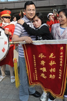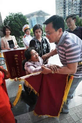 4月8日,洋世達(dá)集團(tuán)公司總裁、凱誼公司總經(jīng)理?xiàng)顒賽?ài)心捐款10萬(wàn)元,用于救助因?qū)W習(xí)用功過(guò)度導(dǎo)致失明的16歲女孩陳心萍,使她得到及時(shí)的救治并終于重獲光明。25日下午,復(fù)明后的陳心萍和母親特別請(qǐng)來(lái)一支鼓樂(lè)隊(duì),敲鑼打鼓來(lái)到“洋世達(dá)?圣天湖”售房部,將一面寫有“無(wú)私相助 永生難忘”的錦旗送到楊總手中。得知接錦旗的就是她們母女一直想見(jiàn)的恩人時(shí),陳心萍的母親撲通跪到地上,連聲說(shuō):“你是我家的恩人呀”,楊總急忙上前扶起她,并熱情接待了母女倆。
