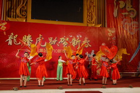 精彩的文藝匯演于下午3點30分在金色大廳準時開始。首先,集團公司董事長、總裁楊勇先生發表了熱情洋溢的新年賀辭,并宣布文藝演出正式開始。節目表演過程中,各個公司都拿出了看家本領,表演了自編自演、精心排練的歌曲、舞蹈、小品等10多個文藝節目。全體觀眾認真、投入的觀賞,并熱情喝彩,掌聲、歡呼聲此起彼伏。