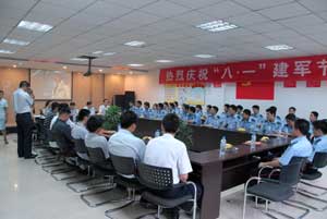為慶祝中國人民解放軍建軍80周年,集團公司于8月1日組織召開了慶?!鞍艘弧苯ㄜ姽澴剷?。集團公司、物管公司有關領導,以及集團公司預備役軍人、各子公司復員退伍軍人、物管公司部分保安隊員參加了會議。會上,宣讀了集團公司致全體預備役軍人、復員退伍軍人、保安隊員的慰問信。與會人員紛紛發言,抒發自己的個人感想,表達作為一名軍人的壯志豪情,以及在洋世達集團大家庭里快樂工作和生活的深切感受。集團公司副總裁張志興出席會議并作了重要講話,他說:一年一度的“八一”建軍節慶祝活動,已成為洋世達集團企業文化的重要組成部分;他代表集團公司全體領導向大家致以節日的祝賀,并對大家在工作中的出色表現和付出的辛勤勞動表示衷心感謝!希望大家繼續發揚人民軍隊的光榮傳統和優良作風,為企業發展繼續作出新的貢獻!座談會結束后,進行了精彩的文藝節目表演和熱烈的聚餐交流活動。