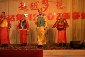 精彩的文藝匯演于下午2:30在金色大廳準時開始。一陣熱鬧的大鼓后,一群可愛的孩子快樂登場給大家拜大年。集團公司董事長、總裁楊勇發表了熱情洋溢的新年賀辭,并宣布文藝匯演正式開始。在16個文藝節目表演過程中,各個公司都拿出了看家本領,表演了自編自演、精心排練的舞蹈、小品、獨唱、諧劇、時裝秀等文藝節目?,F場內,全體觀眾認真觀賞一個個精彩的節目,興奮地參加游戲,臉上充滿了笑容,一片快樂祥和!