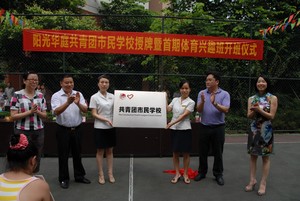 與此同時,“陽光華庭共青團市民學校”揭牌暨青少年體育興趣班開班儀式在陽光匯小區(qū)籃球場舉行,公司董事長楊勇先生出席儀式。青少年體育興趣班學生、陽光華庭業(yè)主及陽光華庭共青團市民學校志愿者近百人參加了儀式。