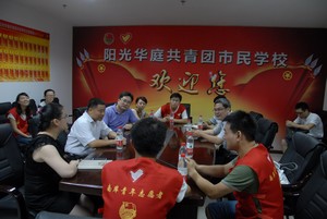 褚峰副部長一行參觀了市民學校的辦校地點、宣傳欄,市民學校青少年體育興趣班的上課情況以及重慶志愿者服務網(wǎng)的建設情況。在隨后的座談會中,褚峰副部長聽取了郭光亮部長及我司團支部對“陽光華庭共青團市民學校”發(fā)展狀況的簡要匯報,對市民學校的工作予以充分的肯定和認同。